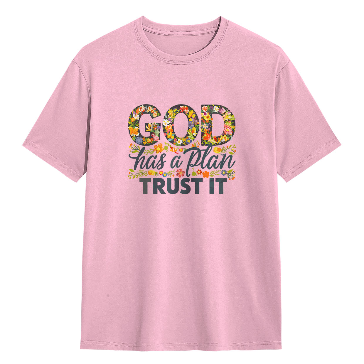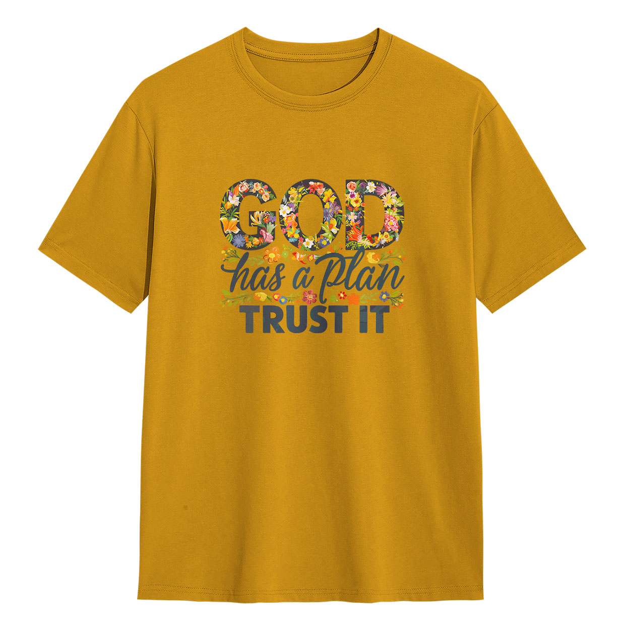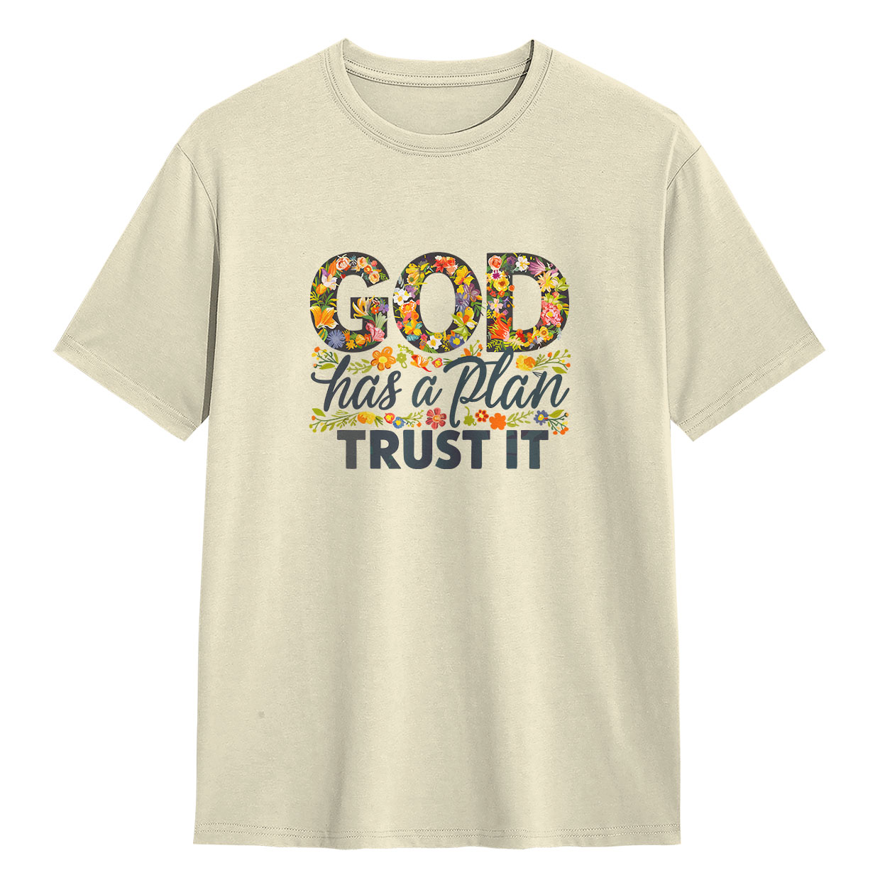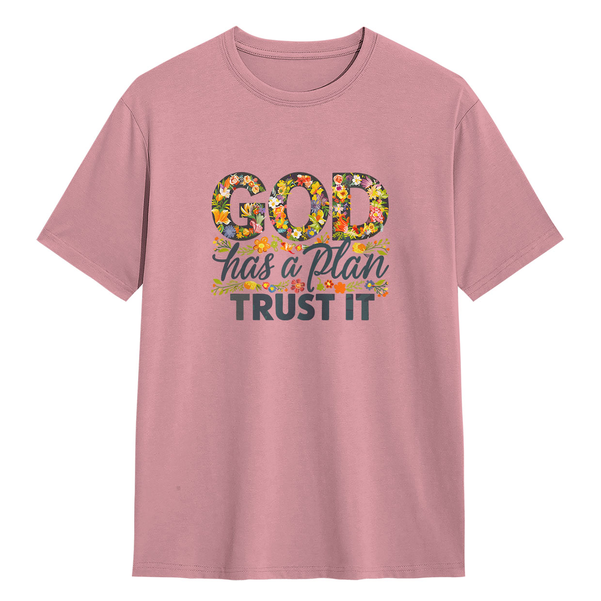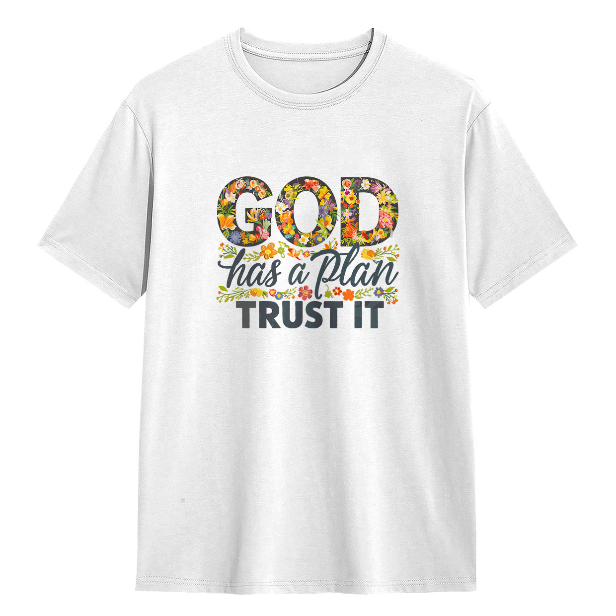 Kaos God Has a Plan Trust It – Baju Katun Kristen Katolik Motif Bunga – T-Shirt Inspiratif Rohani Pria Wanita Casual Distro Unik Kado Religius
