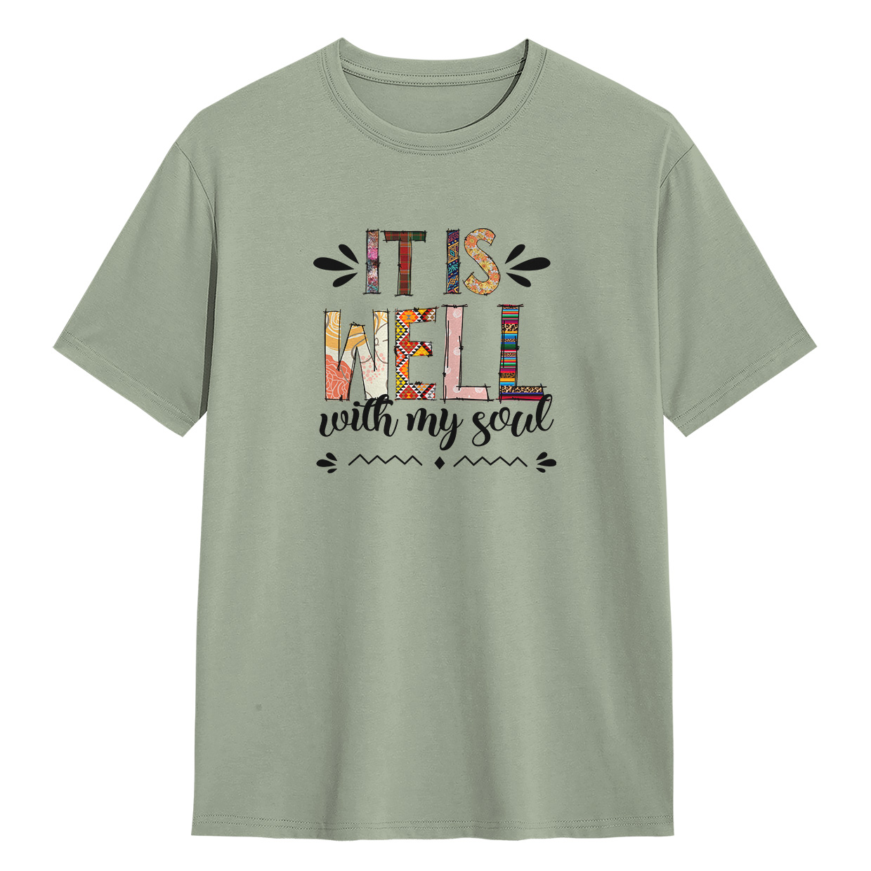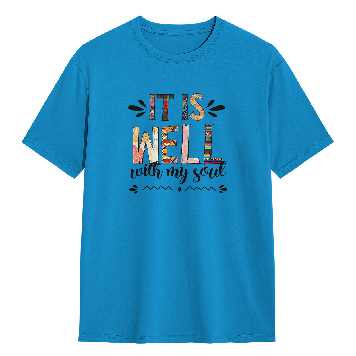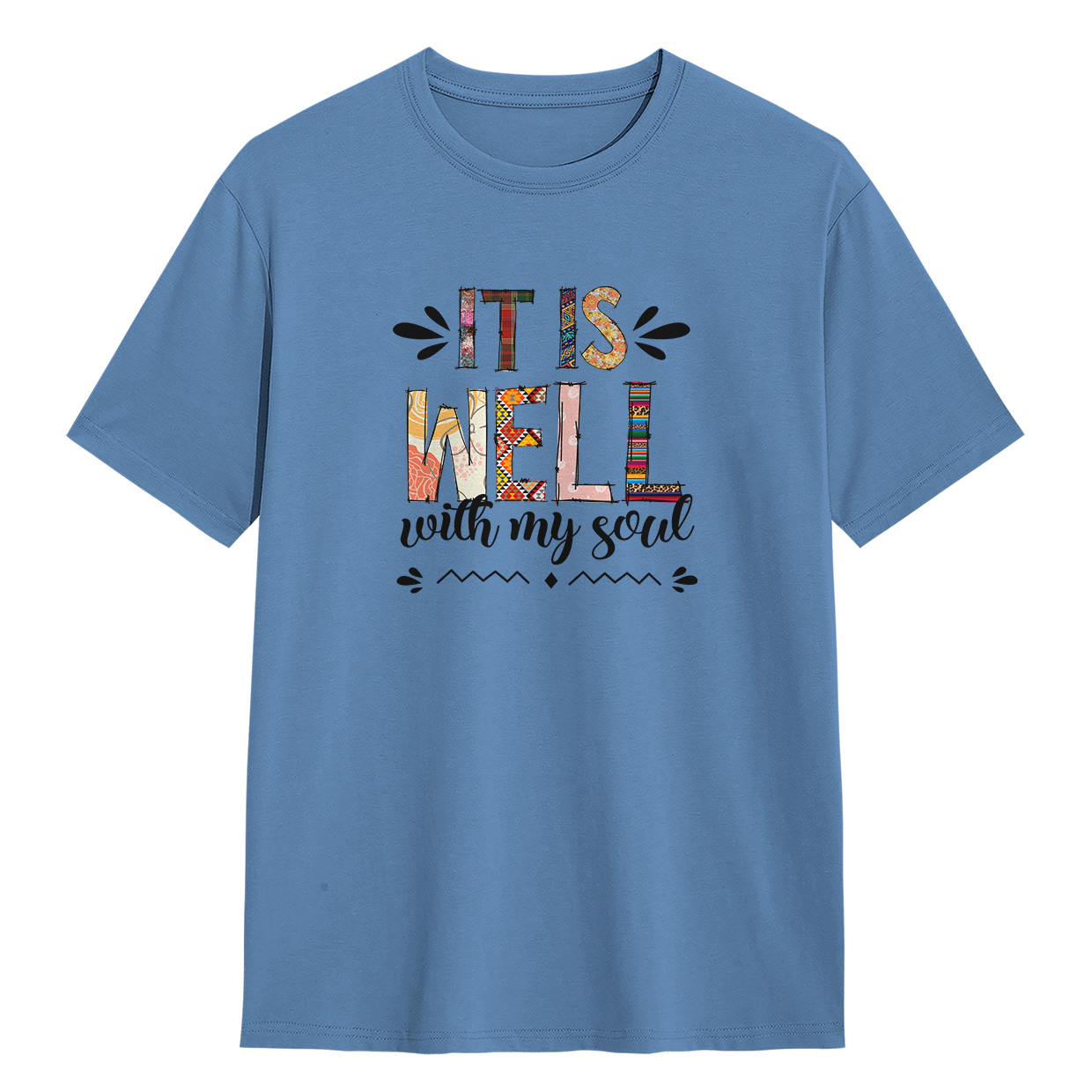 Kaos IT IS WELL with my soul Baju Rohani Unisex Pria Wanita T-Shirt Kristen Katolik Ayat Alkitab