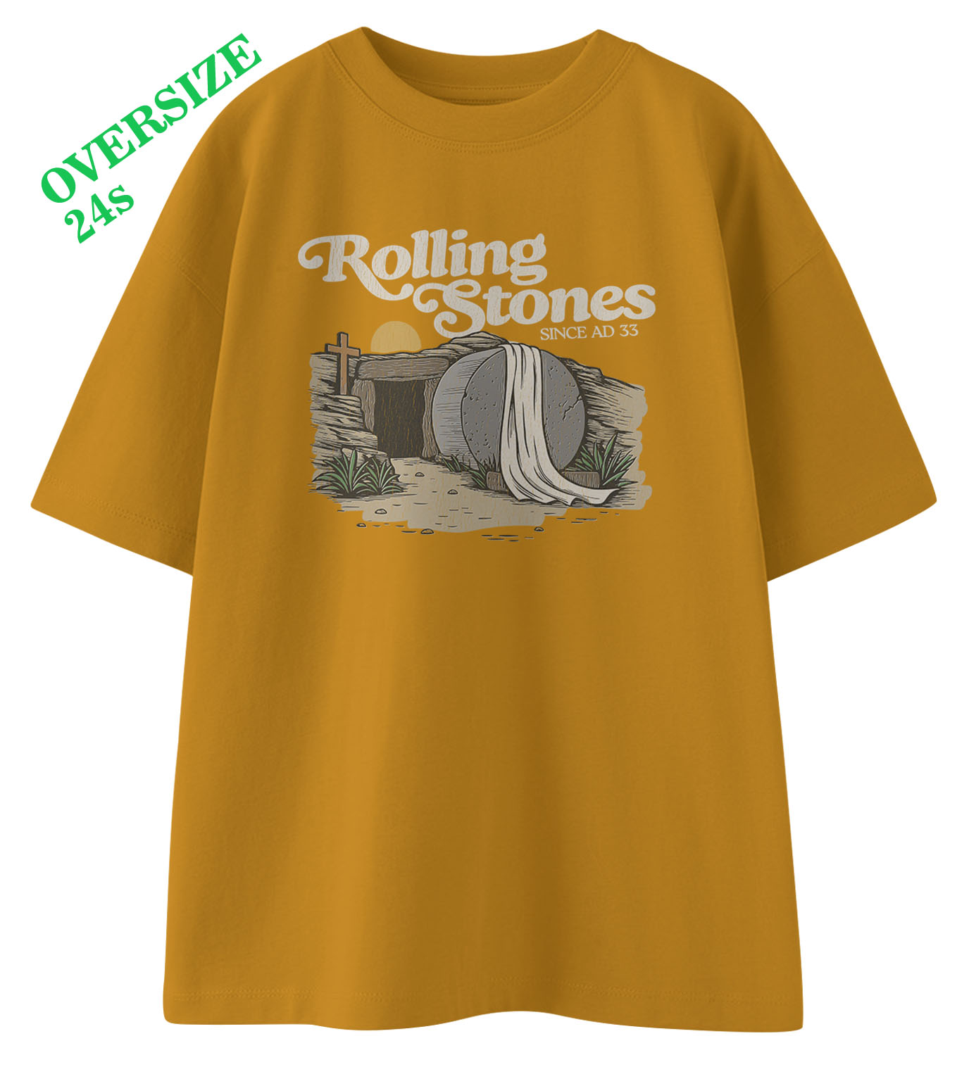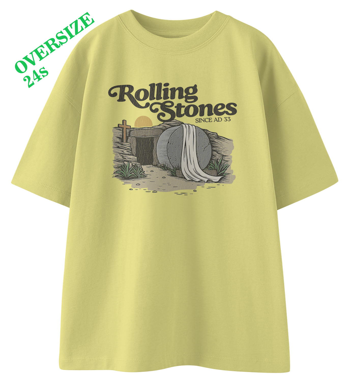 Kaos OVERSIZED Kristen Rolling Stones – T-Shirt Kebangkitan Yesus | Baju Rohani Katolik Unisex -DJAVASTREET